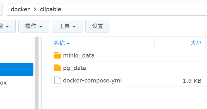 随后我们还需要在docker文件夹中新建clipable文件夹,并在其中新建子文件夹minio_data与pg_data用于存放数据。