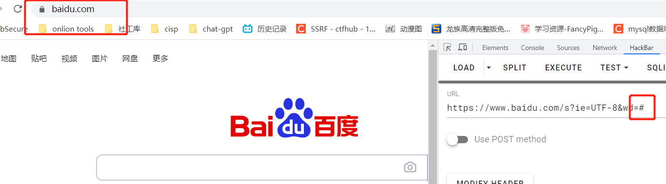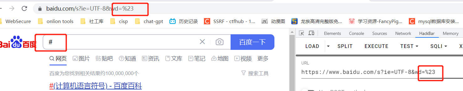 再比如搜索#号,不对其url编码就会跳到百度首页,这是因为#在url中是锚点。所以相当于搜索空字符,就会跳到百度首页。