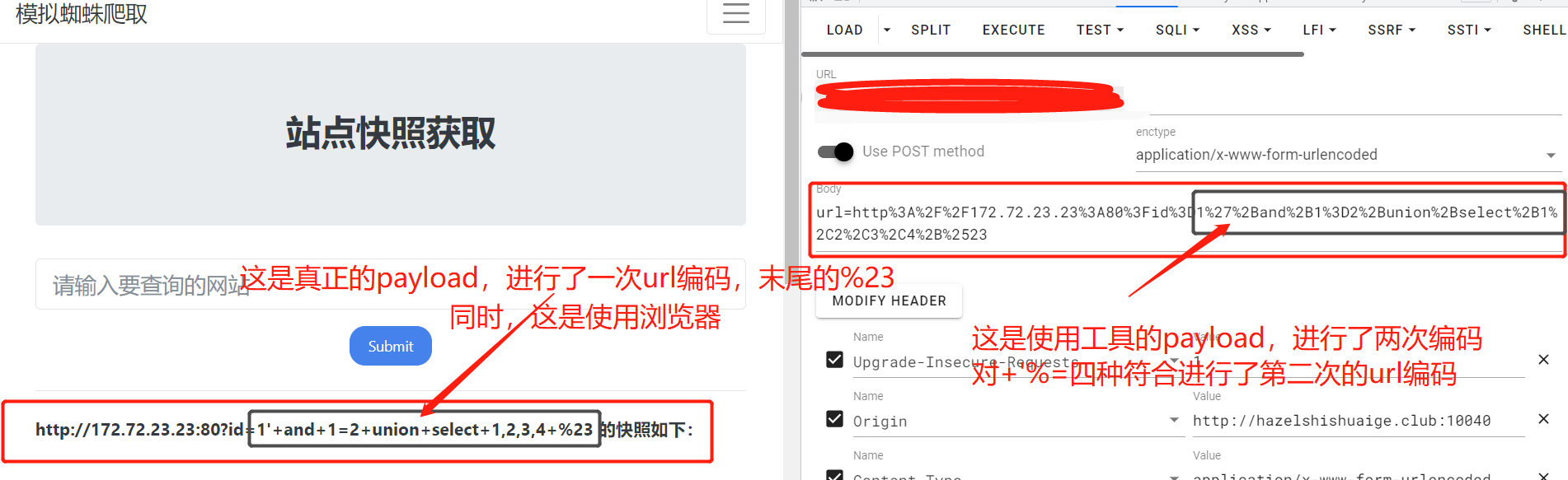 有几次编码就要有几次解码,这样才能获得正确的信息。 所以在解决url编码问题时,需要思考的问题就是一共进行了几次编码。 所以当使用工具构造payload时需要进行一次url编码,而使用浏览器就不需要,因为浏览器会默认编码一次。
