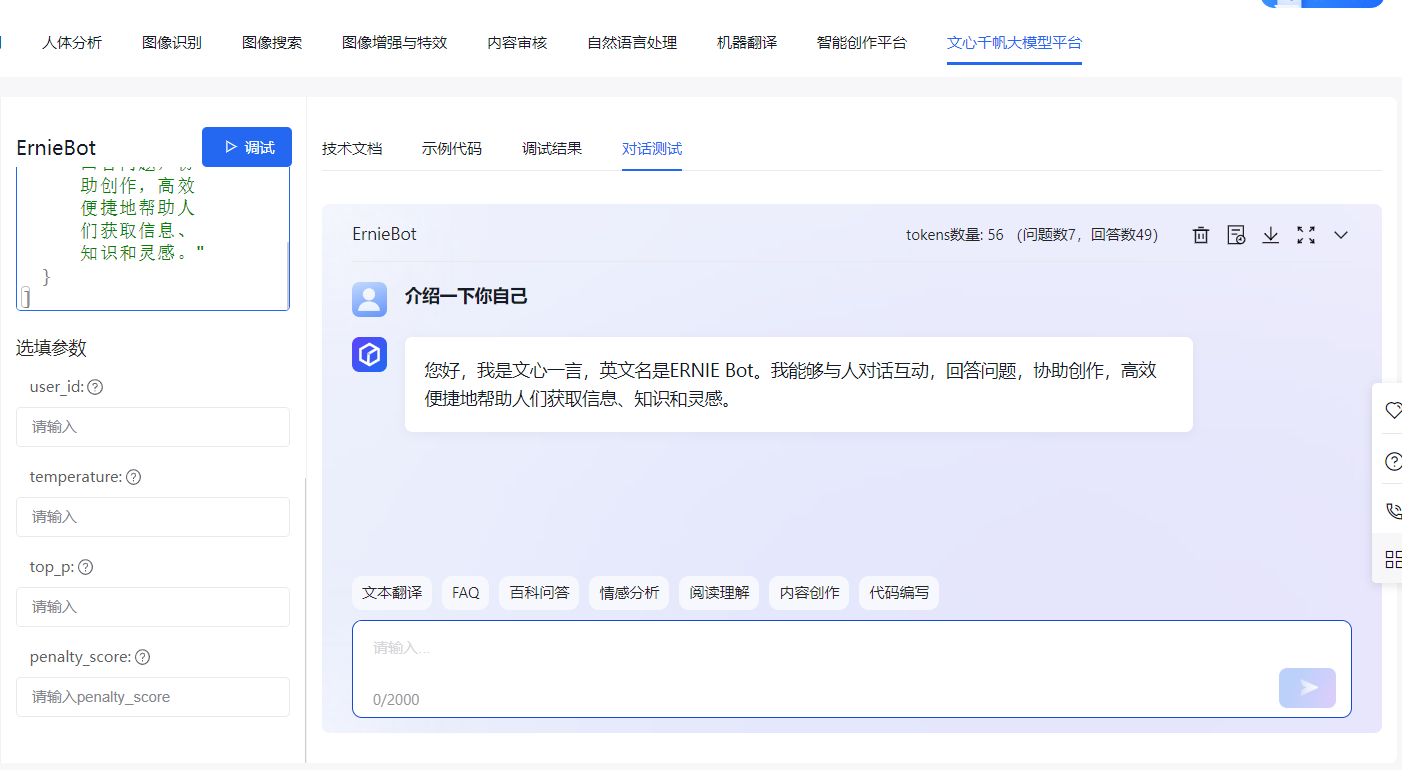 文心千帆大模型平台提供了强大的对话式语言模型,它可以通过自然语言交互的形式,根据用户的指令,完成问答、文本创作、代码查错等各种任务。这种对话式语言模型让我惊叹不已,它的应用场景非常广泛,可以帮助企业和个人快速构建智能化的应用和服务。