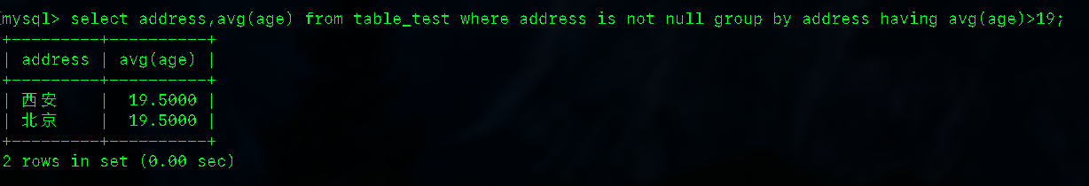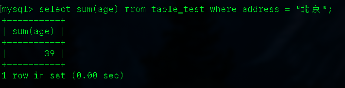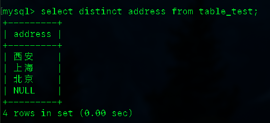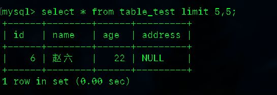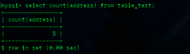 注意:在使用聚合函数的时候,所有的null值是不参与运算的,虽然table_test表中有6个数据,但是address列有一个是null,所以统计address字段时是5