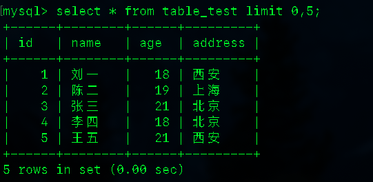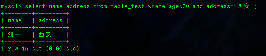 5、查询年龄小于20并且地址在西安的人的姓名和地址