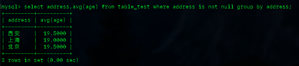 3.1 统计不同地区的平均年龄,需要根据address做分组