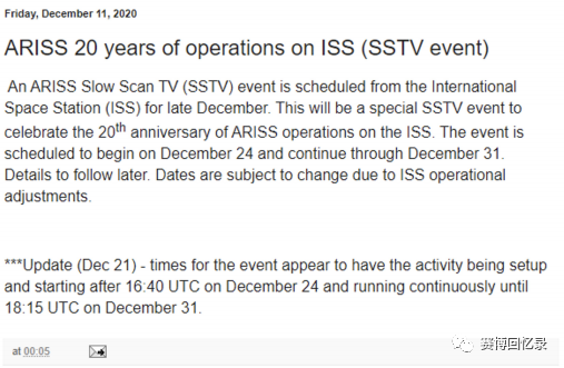 在写此文时发现 ISS 国际空间站庆祝20周年,12月14号又要搞事啦!感兴趣同学可以动手自己尝试, 具体信息如下: