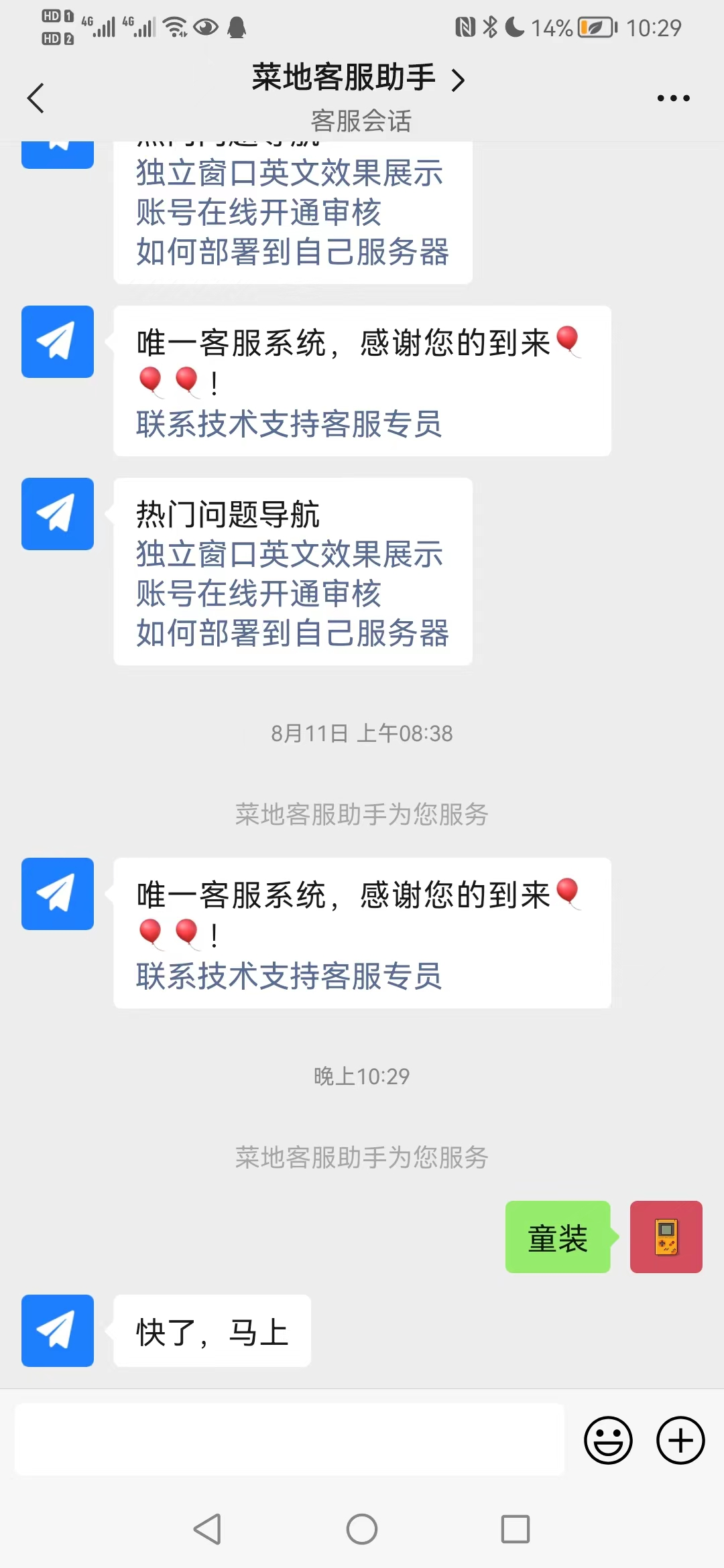此时在小程序的客服组件里,就能收到来自我客服系统的消息回复了,并且不影响客服人员使用微信自带工具接入