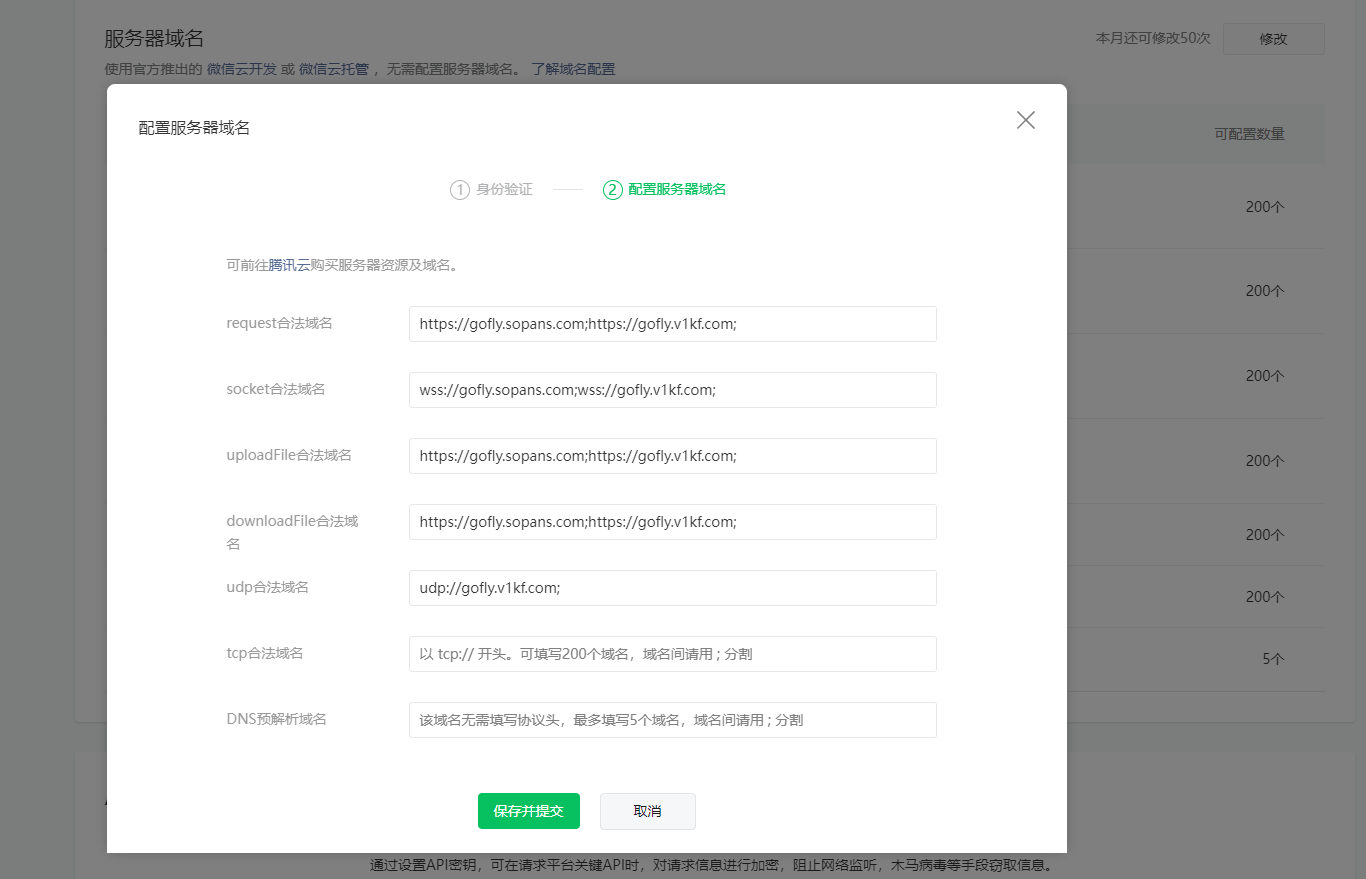首先登录小程序后台 在小程序后台==>开发管理==>开发设置==>服务器域名部分,配置好自己的域名