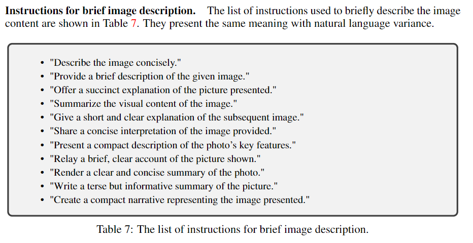 表1. 多模态聊天指令跟随能力的性能比较,通过GPT-4评估得出的相对分数