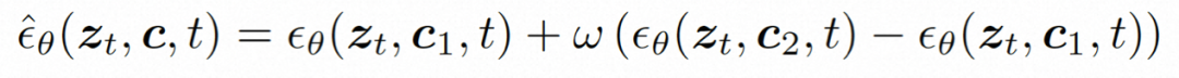其中,ω 是指导比例;c1 和 c2 是两组条件。这种指导机制在两条件集合判断,可以通过强度控制来让模型具有更加灵活的控制。