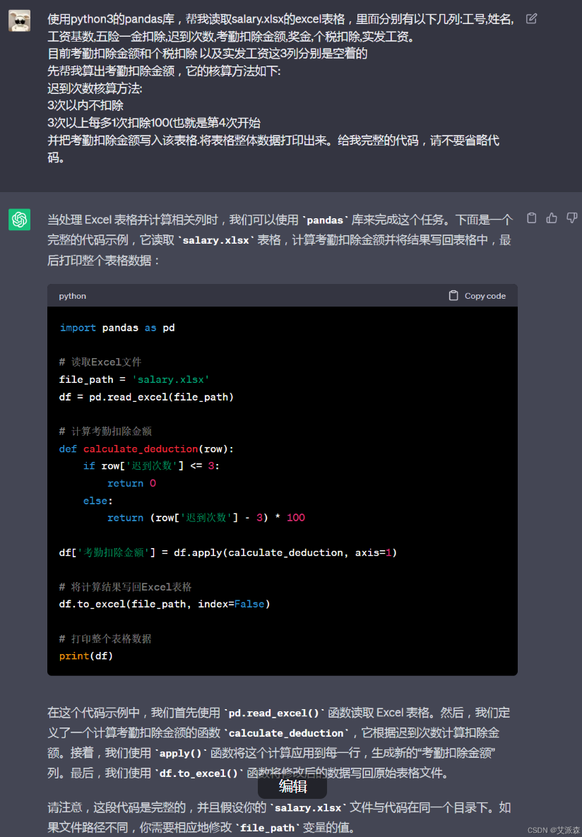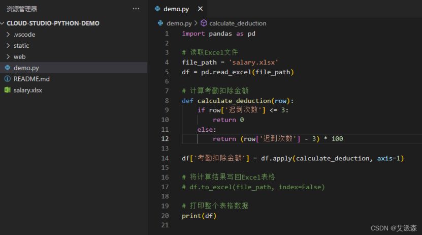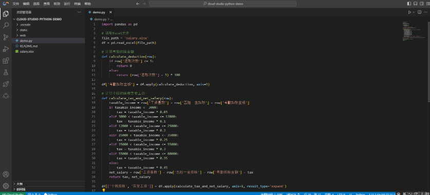 这正是GPT技术和云集成开发环境(IDE)的结合所带来的创新。将人工智能引入工资核算领域,意味着我们可以让计算机自动处理和分析数据,从而减少人为错误的风险。Cloud Studio则为这一创新提供了完美的舞台,它为我们提供了一个灵活的开发环境,让我们能够轻松构建和部署智能化的工资核算系统。在这篇博文中,我们将深入研究如何通过GPT技术与Cloud Studio,实现Excel工资的自动化核算,从而使核算过程更加高效、精确,为企业管理带来全新的可能性。无论您是人力资源专业人士、财务管理者,还是对新技术充满好奇,本文都将为您揭示一个变革的前景,让您在工资核算的道路上走得更稳更远。