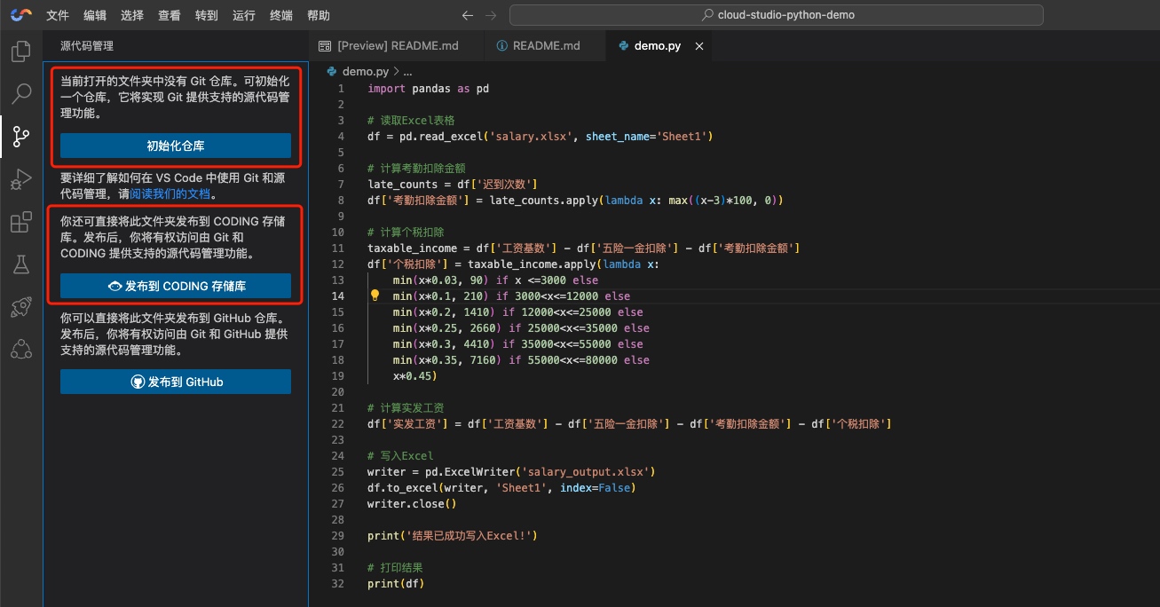 本次实验,我们是使用 Python 完成一个Excel表数据中的自动计算及填充,代码逻辑让GPT帮我们实现,我们只需在Cloud Studio 提供的环境中进行验证即可。