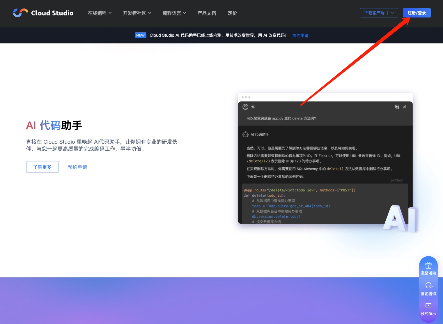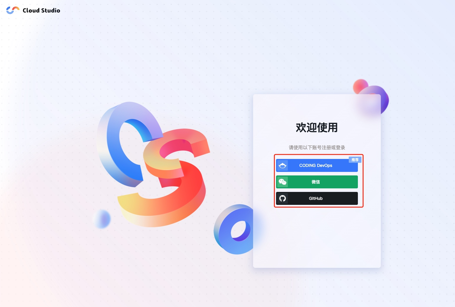 这里注册 Cloud Studio 非常方便,有三种注册方式