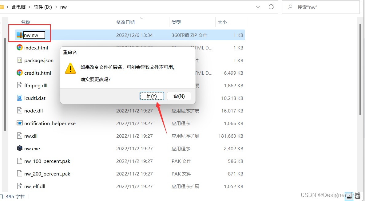 最后将压缩包后缀名,由 zip 改为 nw,如下图所示。