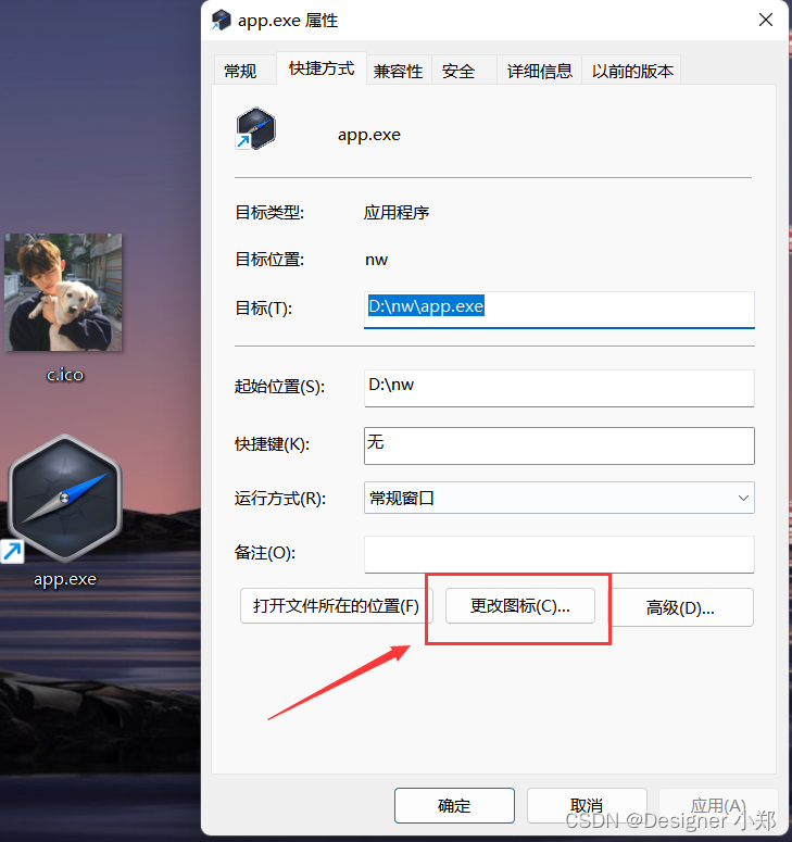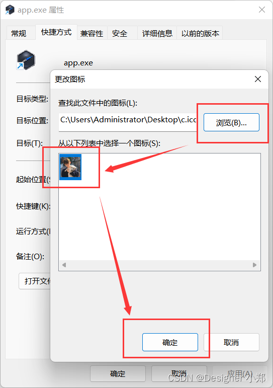 点击浏览,选择 ico 图标后,点击确认,如下图所示。