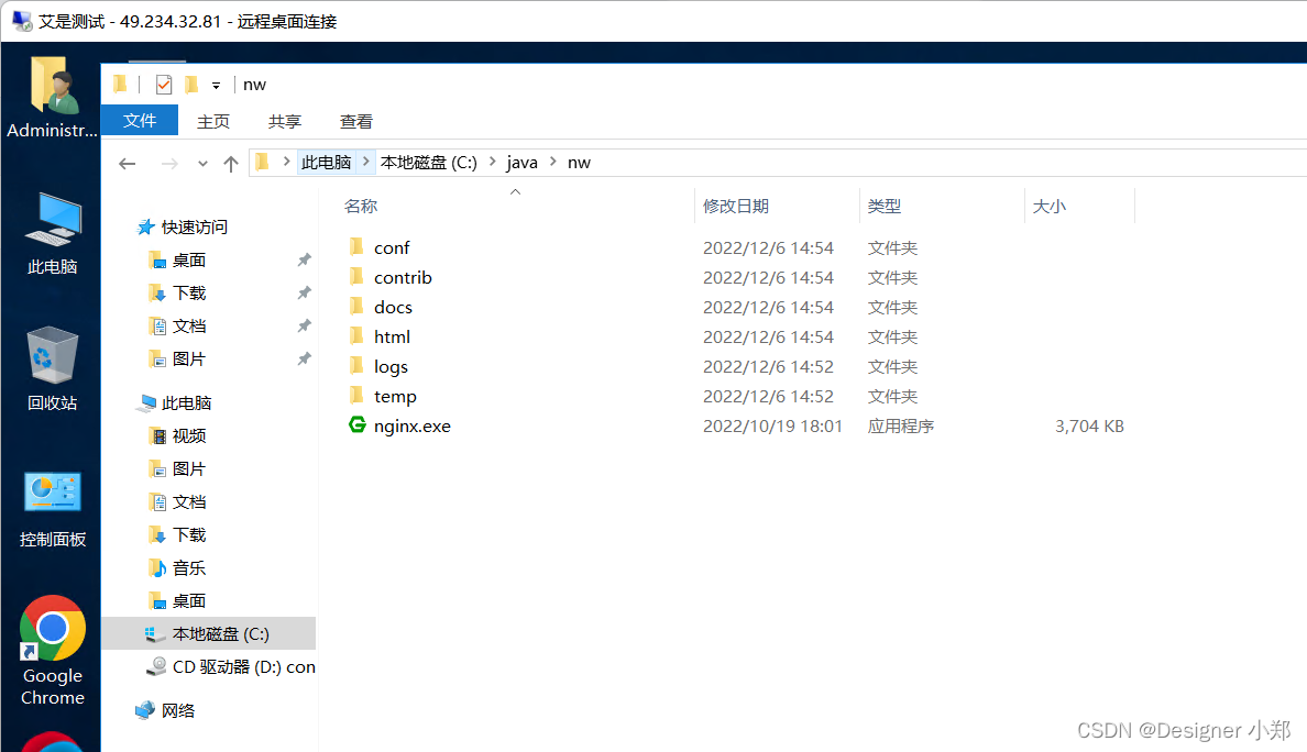 将上一步完整的 nginx 文件夹复制到服务器的硬盘上,如下图所示。