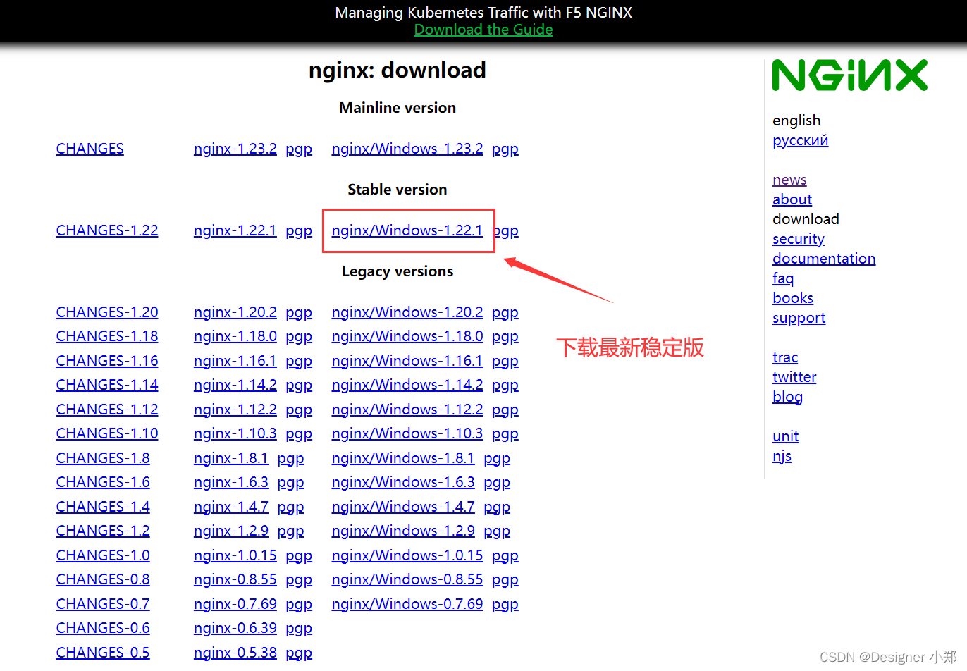 同学们可以下载最新稳定版的 Nginx,如下图所示。