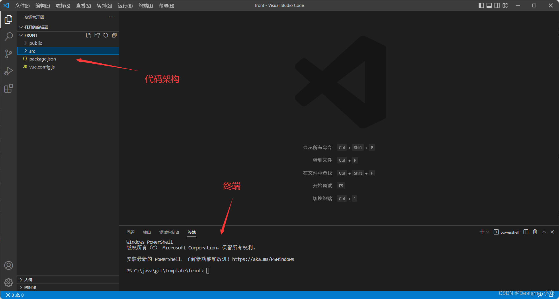 使用 VsCode 打开项目的 front 文件夹。
