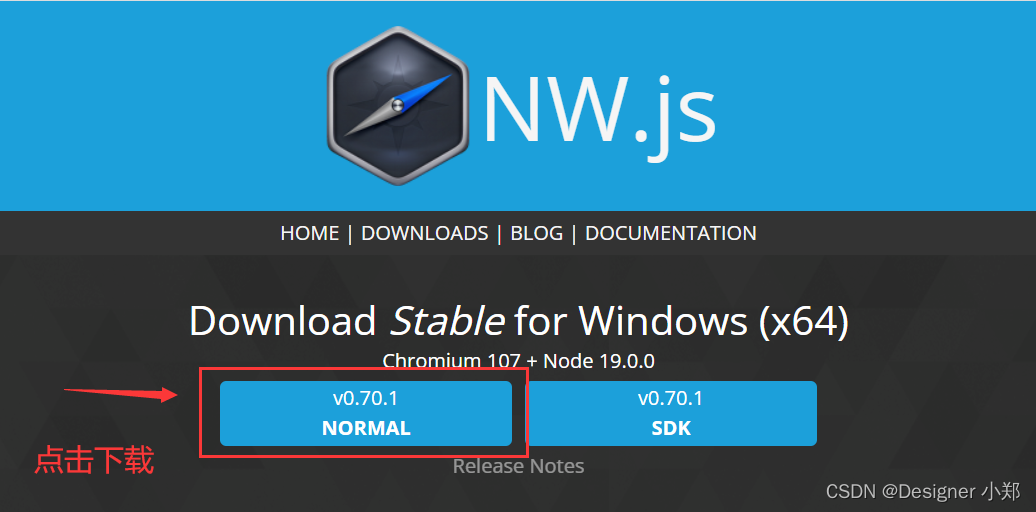 进入 NW.js 官网,点击下载最新版,如下图所示。