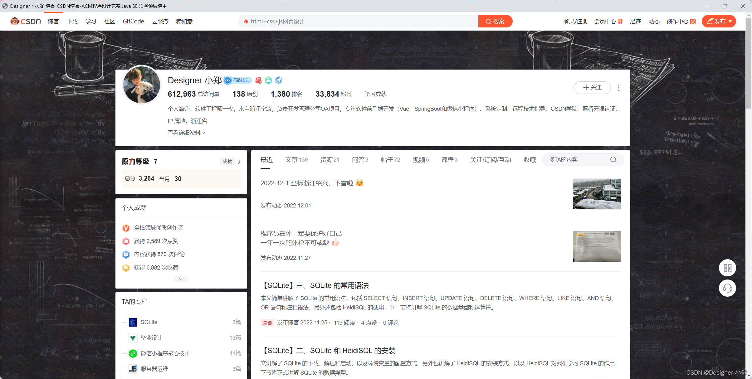 作者主页:Designer 小郑 作者简介:软件工程师一枚,来自浙江宁波,负责开发管理公司OA项目,专注软件前后端开发(Vue、SpringBoot和微信小程序)、系统定制、远程技术指导。CSDN学院、蓝桥云课认证讲师,全栈领域优质创作者,在校期间参加PAT乙级考试获得满分,三年ACM竞赛经验,斩获国奖两项,省奖五项。热爱技术、专注业务、开放合作、乐于分享,期待你我共同成长! 主打方向:Vue、SpringBoot、微信小程序