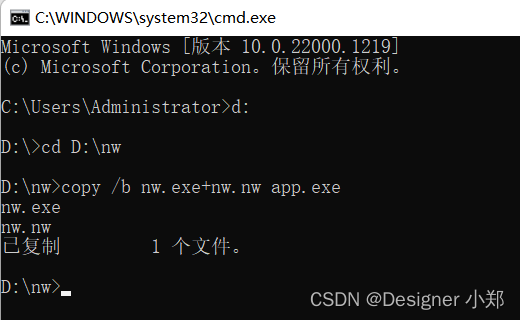copy /b nw.exe+nw.nw app.exe运行结果如下图所示。