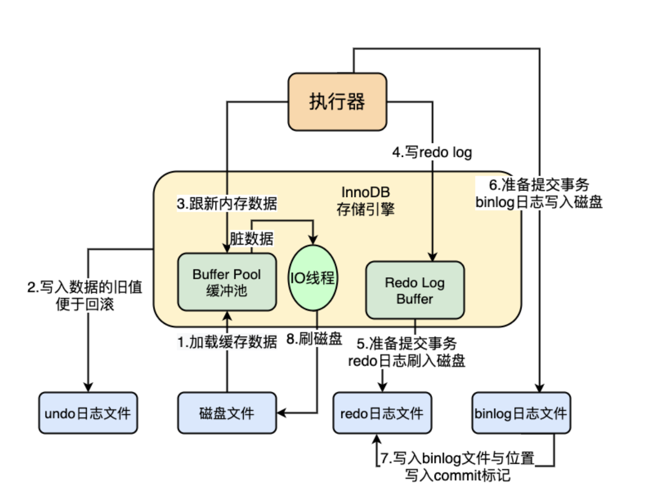 undo log 回滚日志 (innodb中的read commit 和repeatable read通过mvcc+undo log实现) mvcc(多版本并发控制)