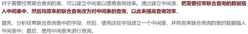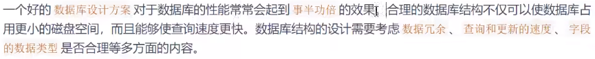 表的规范化程度越高,表与表之间的关系就越多,需要连接查询的情况也就越多。尤其在数据量大,而 且需要频繁进行连接的时候,为了提升效率,我们也可以考虑增加冗余字段来减少连接。