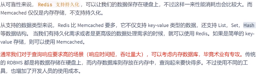 常用的键值存储数据库有 Redis 和 Memcached,它们都可以将数据存放到内存中。