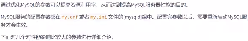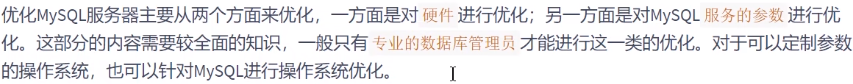 服务器的硬件性能直接决定着 MySQL 数据库的性能。硬件的性能瓶颈直接决定 MySQL 数据库的运行速度 和效率。针对性能瓶颈提高硬件配置,可以提高 MySQL 数据库查询、更新的速度。