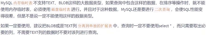 情况 3:避免使用 TEXT、BLOB 数据类型
