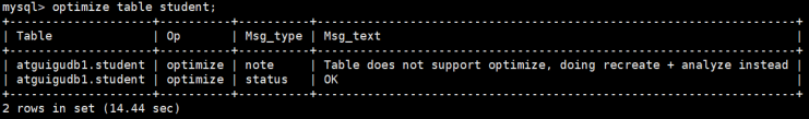 说明: 在多数的设置中,根本不需要运行 OPTIMIZE TABLE。即使对可变长度的行进行了大量的更 新,也不需要经常运行,