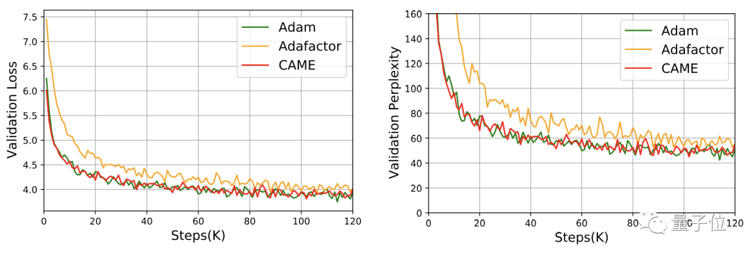 此前常用的Adam(效果更优)和Adafactor(消耗更低)是衡量CAME表现的参照。