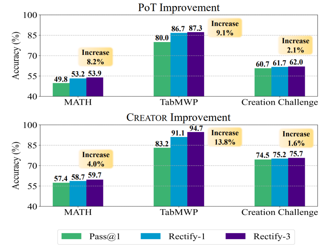 对于大模型创造的工具在其他问题上迁移,能够有效提高准确率