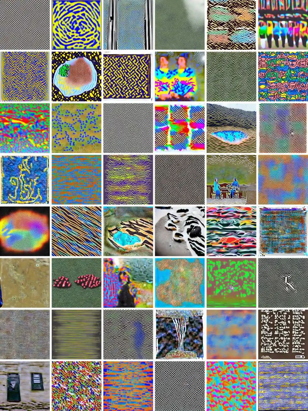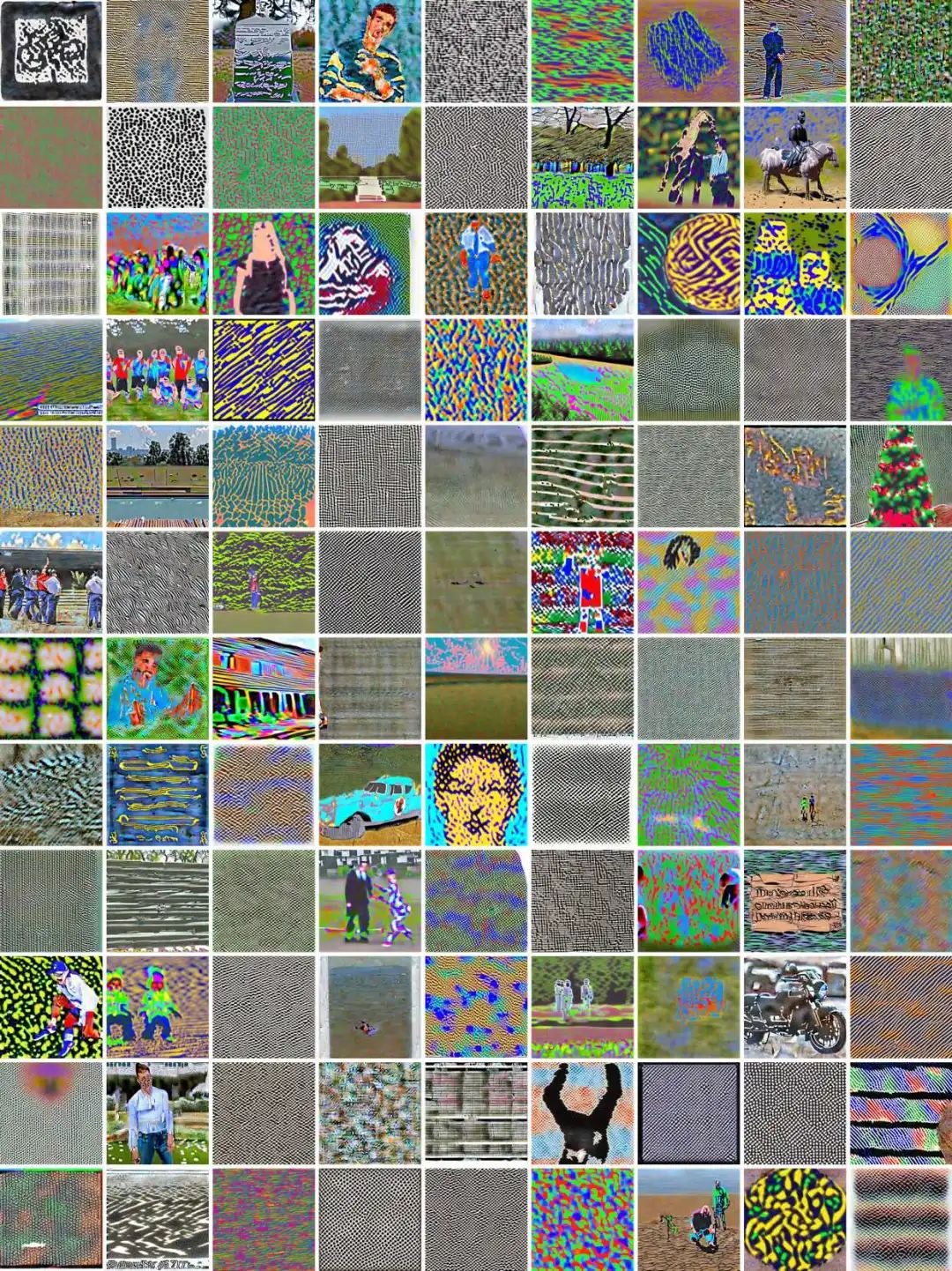 事实上,有一些重复出现的图案可能就是神经网络底层结构特征的反映。