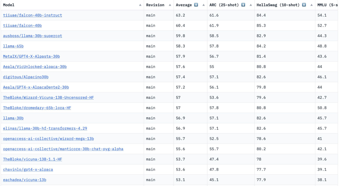 Falcon 40B还是继H2O.ai模型发布后,第二个真正开源的模型。然而,由于H2O.ai并未在此排行榜上与其他模型进行基准对比,所以这两个模型还没上过擂台。