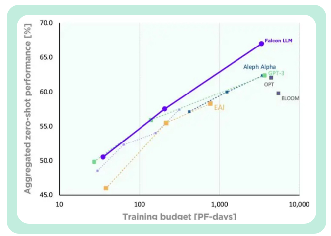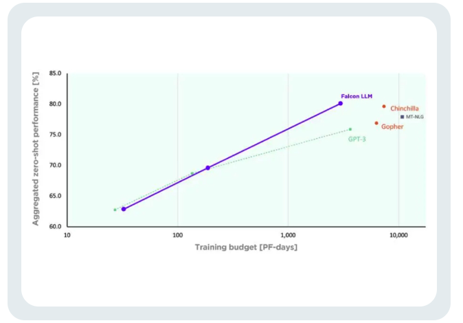 TII称,与GPT-3相比,Falcon在只使用75%的训练计算预算的情况下,就实现了显著的性能提升。