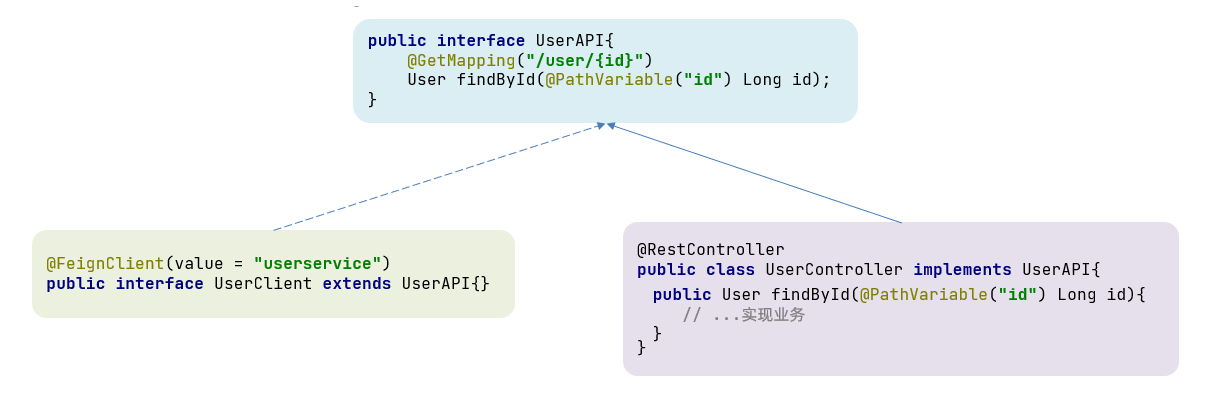 例如,将 UserClient、User、Feign 的默认配置都抽取到一个 feign-api 包中,所有微服务引用该依赖包,即可直接使用。