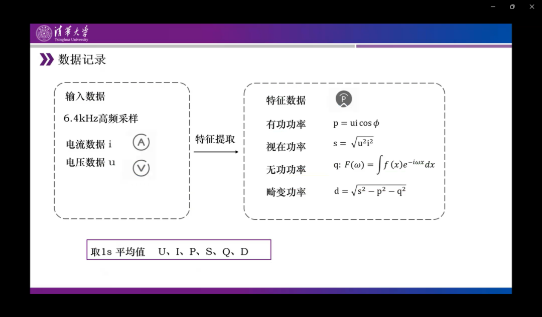 电表的记录数据为高频的数据通过6400赫兹的采样电流及电压数据,通过本地实时计算,视在功率、有功功率等特征之后,将一秒内的数据平均值进行数据上报。