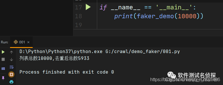 那我们需要确定一个问题,Faker生成的数据是具有唯一性的吗?我们可以通过一小段代码来验证一下。