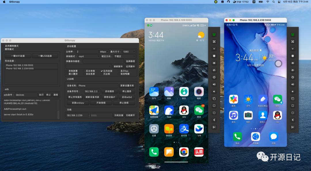 QtScrcpy是一款基于Scrcpy和Qt开发的Android远程控制软件,支持Windows、macOS和Linux系统,它能够将Android手机的屏幕投射到电脑上,并且不需要ROOT权限,同时也支持将手机屏幕录制成视频。