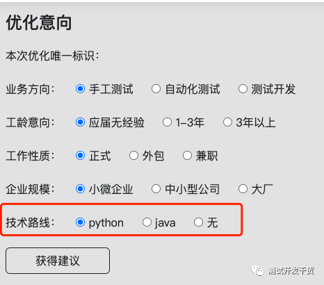 后端算法中,会按照不同工龄等其他优化设置,提供默认的二者的关键字技术,来检查待优化简历中是否足够。