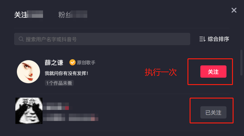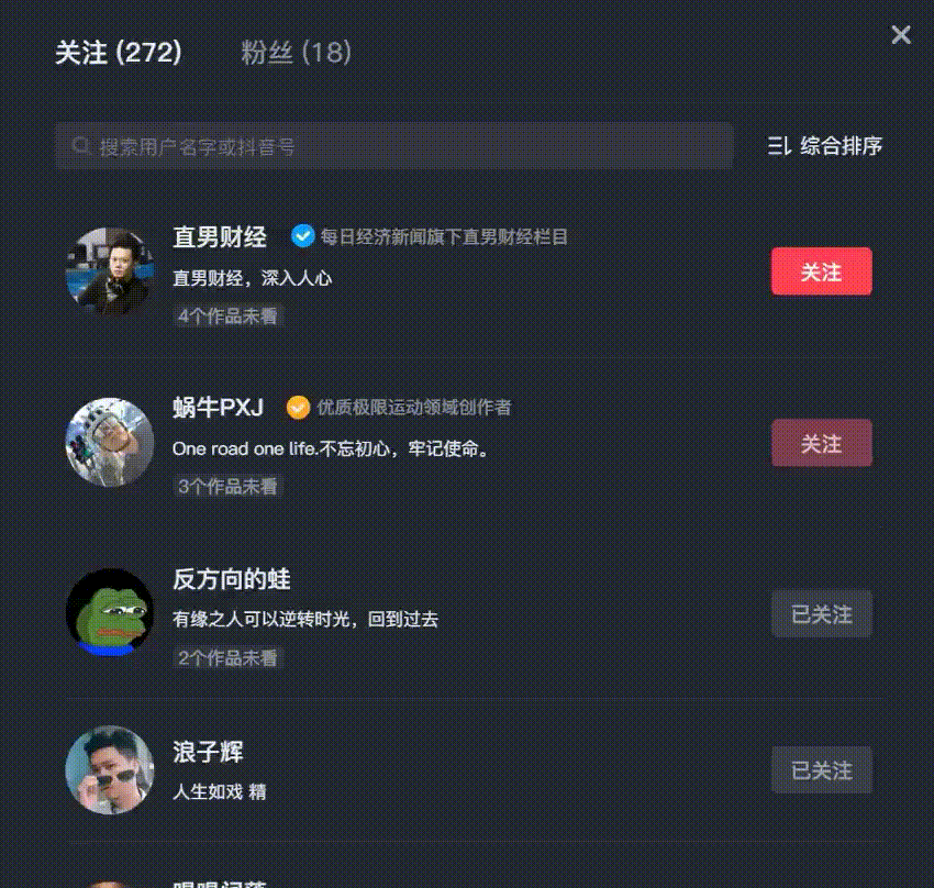 emm,如果是以超高频率去请求的话,轻则 IP 被关入小黑屋,重则抖音号被永久封禁,但是自己又不知道需要将速度控制在多少以内,因此,以这种模拟点击的方式去实现取关反而效果更好。