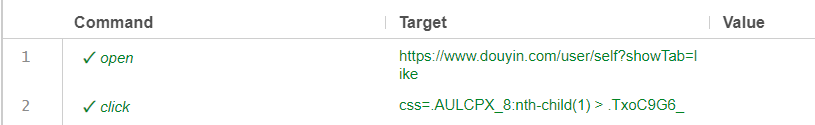 1、由于 https://www.douyin.com/user/self?showTab=like 能够直接到达个人主页的 “我的”,因此直接使用 open 指令: