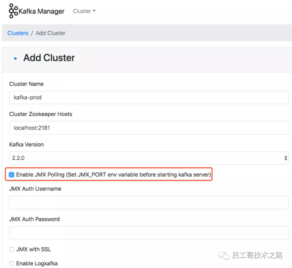 然后我们就可以新建Cluster,点击【Cluster】>【Add Cluster】打开如下添加集群的配置界面: