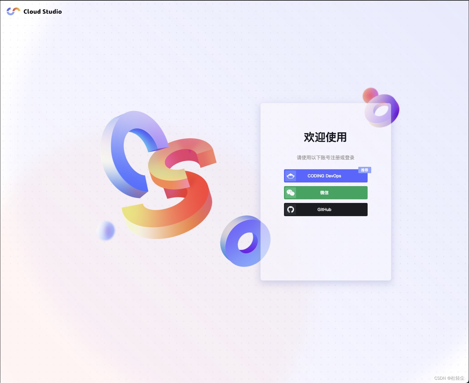 打开Cloud Studio网址(https://cloudstudio.net/),进行登录注册。