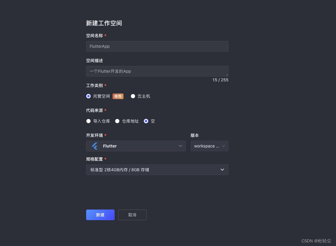 完成上述配置后,点击 “创建” 按钮确认创建新的工作空间。