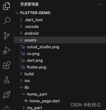 需要注意的是,这时我们需要添加一些图片,新建一个文件夹assets,然后在配置文件中pubspec.yaml添加配置,代码如下: