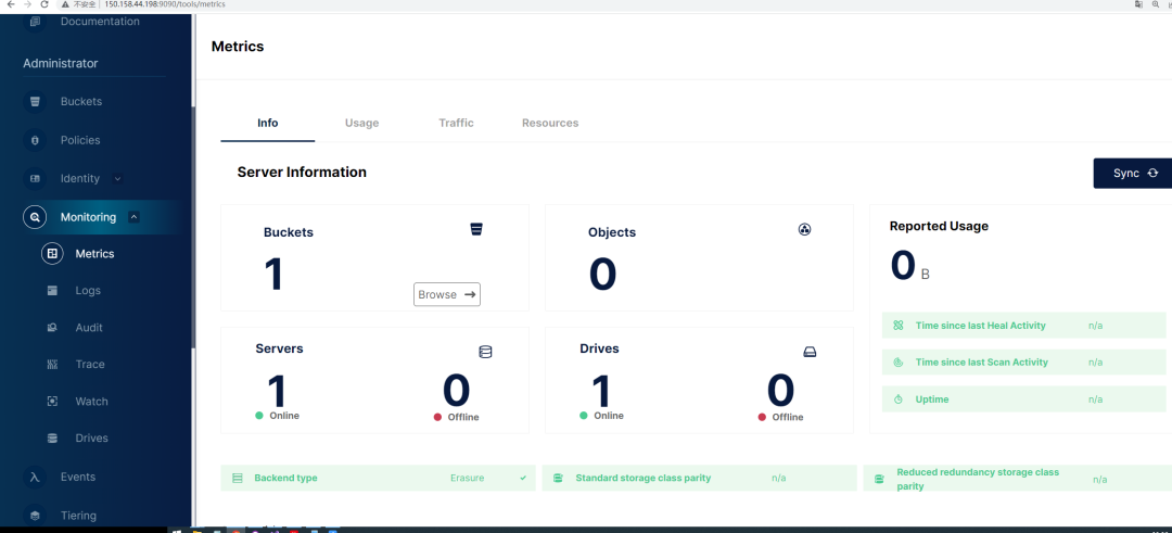 --console-address ":9001"这样的话,集群就搭建完成,访问任意一个节点的9090端口,就可以看到