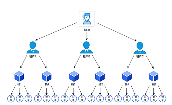 租户:用于隔离存储资源。在租户之下可以建立桶、存储对象。