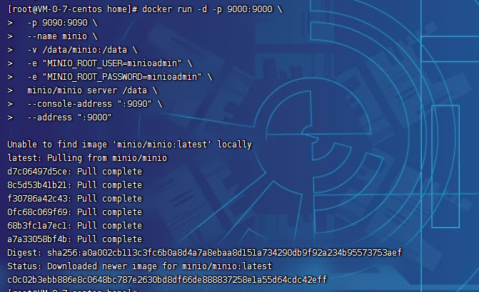docker run -d --name minio \