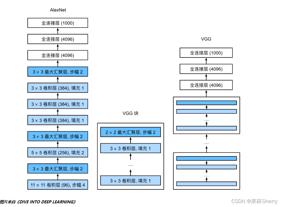 不同的卷积块个数和超参数可得到不同的VGG块。