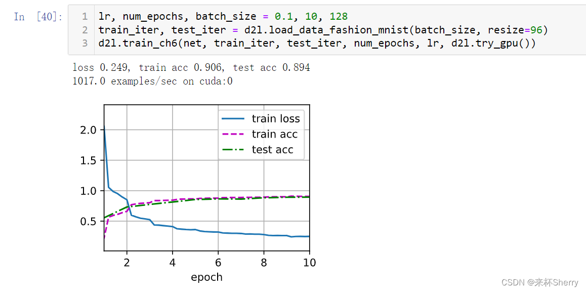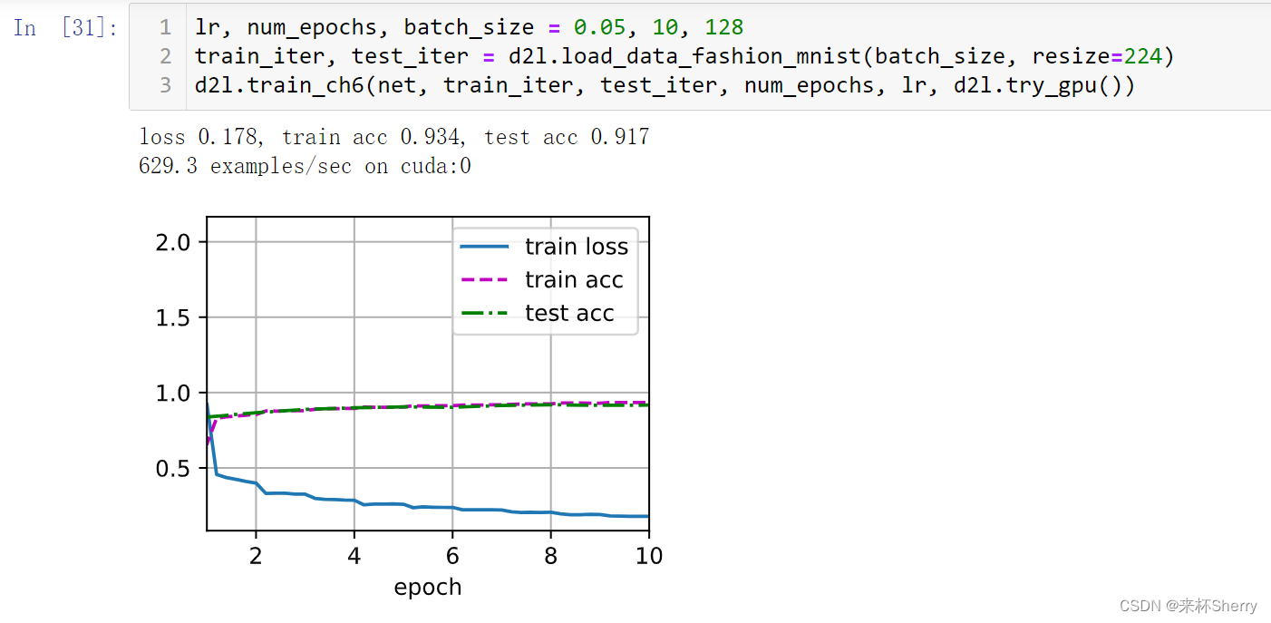 train_iter, test_iter = d2l.load_data_fashion_mnist(batch_size, resize=224)训练